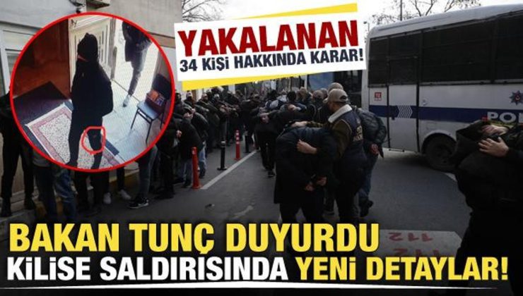 Adalet Bakanı Yılmaz Tunç, Santa Maria Kilisesi’ndeki silahlı saldırıya ilişkin soruşturmada 25 şüphelinin tutuklandığını, 9 şüphelinin adli kontrol şartıyla serbest bırakıldığını bildirdi.