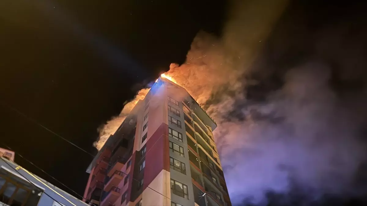 Zonguldak’ın Kozlu ilçesinde 13 katlı apartmanın çatısında çıkan yangın söndürüldü.